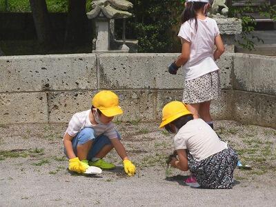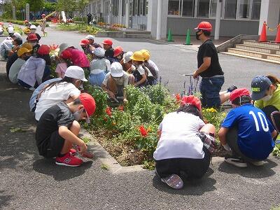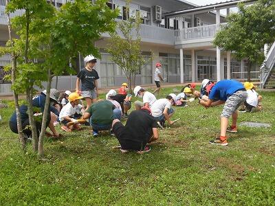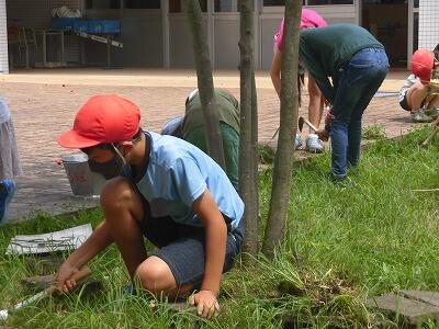 清掃の時間を活用して、グリーンタイムを実施しました。全児童での、草むしりです。15分間という短い時間ではありましたが、子どもたちは学校を綺麗にしようという想いをもって集中して取り組みました。
