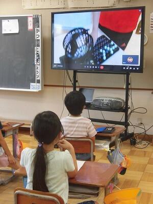 朝の活動の時間にオンラインで夏休み前集会を実施しました。