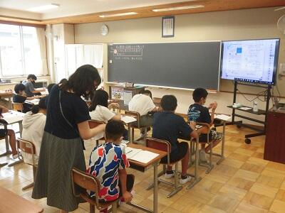 夏休みが終わり、子どもたちの元気な声が学校に戻ってきました。夏休み後集会を行い、校長から学校目標の実現についての話と新型コロナウィルス感染症対策について話がありました。