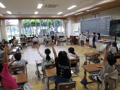 本校の図書応援隊の皆様が、子どもたちに読み聞かせを行ってくださいました。夏休み後は、新型コロナウイルス感染症に関する緊急事態宣言であったため、久しぶりの読み聞かせです。子どもたちは、目を輝かせながら応援隊の方々の読み聞かせに聞き入っていました。本校の2学期の目標の一つに「読書」があります。読み聞かせは、読書好きを作る第一歩ですので、貴重な時間になりました。