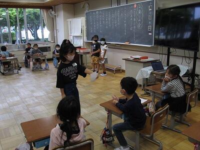 学期末などはクラスによってお楽しみ会を行うクラスも多いようです。お楽しみ会は子どもたちが楽しめることを自分たちで考え話し合い、自分たちで準備し開催します。子どもたちの自主性や協調性、協力性、団結力などを養う大切な活動ととらえています。このクラスではクイズ大会やいす取りゲーム、宝探しなどいろいろなお楽しみ活動を楽しんでいました。