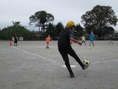 今日のクラブでフットベースクラブとスポーツクラブの児童が、フットゴルフに挑戦しました。フットゴルフは、現在、さくら市で、普及に取り組んでいる「推し」のニュースポーツです。今日は、市役所の職員の方と市内のゴルフ場スタッフの方にお越しいただき、ルールの確認やミニクイズを行い、簡単な練習をした後、実際にゲームを行いました。ゲームに入ると子どもたちは夢中でボールを追いかけていました。