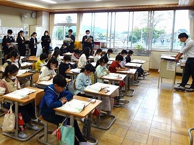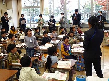 今日の5時間目、本校において、小中一貫教育事業の相互授業参観が行われました。さくら市内の小中学校の教職員、教育委員会関係者約90名が、1年生、4年生、5年生ので道徳の授業を参観しました。授業参観後は、授業研究会を行い、今日の授業を振り返っていました。