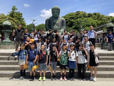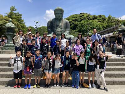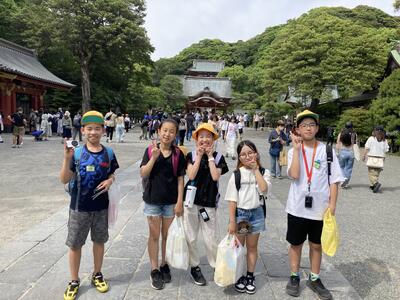 鎌倉(高徳院)に到着しました。みんなとても元気です。大仏をバックにクラスごとに写真を撮った後、活動班ごとに見学がスタートしました。