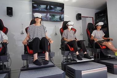 VR体験車です。栃木県内にあるのは、この車両1台のみという貴重なものです。水害や地震などの災害をVRで体験ができるものです。貴重な体験ができました。