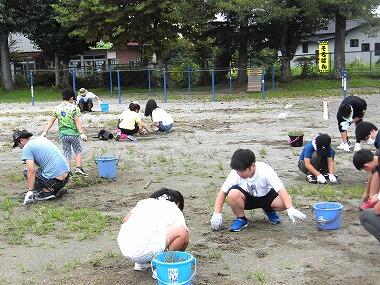 8月24日(土)に第2回目の奉仕作業を実施しました。今回は2、4、6年生の児童とその保護者の方々が中心となって作業をしてくれました。また、学びの環境応援隊の方々も草刈りをしてくださいました。湿度が高い中でしたが、暑さが厳しくなる前に無事終了することができました。校庭の除草や草刈り、コースロープ張り、机や椅子の高さ調整などいろいろな作業をしていただきました。お世話になりました。