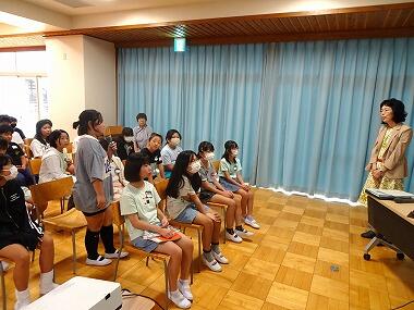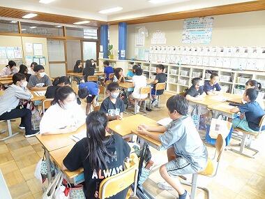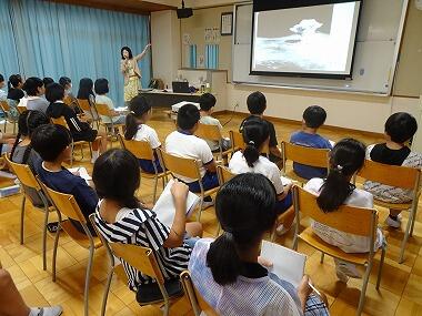 今、5年生は国語の授業で「たずねびと」の学習をしています。内容は、原爆供養塔納骨名簿のポスターに自分と同じ名前を見つけた女の子が、自分と同じ名前の女の子を探しに広島へ出かけ、いろいろな経験をしながら原爆について知っていくという物語です。物語の背景を知るために、今日は被ばく2世の会の方より、原爆投下後の広島の様子などについてお話をしていただきました。