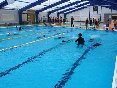 今日からいよいよ水泳の授業が始まりました。今日は、6年生と4年生がB&Gのプールでコース別に泳いだり、水慣れをしたりしました。まだまだ暑い日が続きそうですので、たくさん泳いでほしいと思います。明日は1、3、5年生がプールに入る予定です。