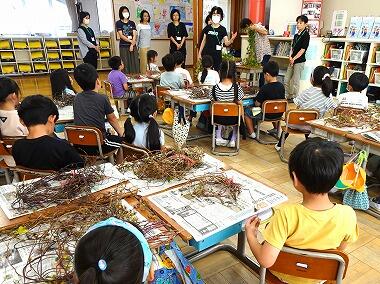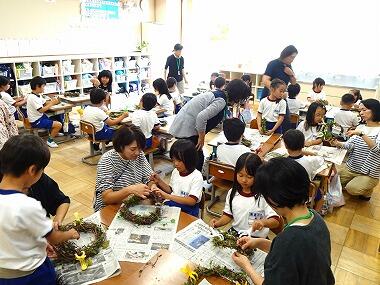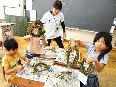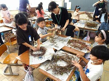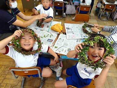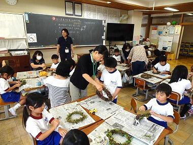 1年生が生活科の授業で、1学期に育てたあさがおの蔓を使って、リースづくりに挑戦しました。授業応援隊の方々もたくさんお手伝いに来てくれたので、みんな上手に作ることができました。この後は、各自が工夫しながら飾り付けをしていくそうです。完成が楽しみですね。