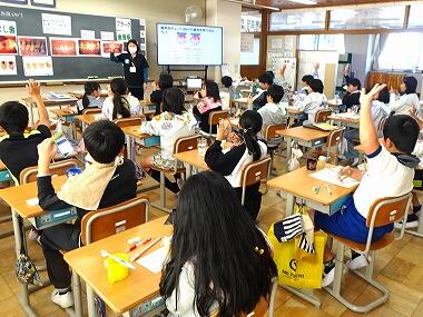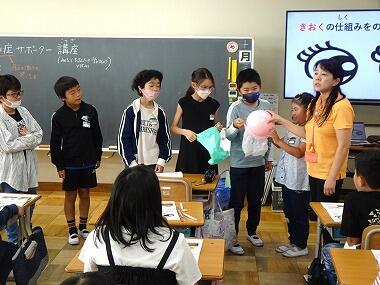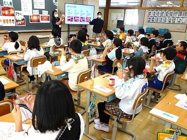 10月22日~24日、クラスごとに4年生が認知症サポーター養成講座を受講しました。認知症は、誰にでも起こりうる脳の病気であることをビデオやクイズなどをとおして学びました。そして、優しく声をかけることでよくなる症状があること、3ないポイント(おどろかせない、いそがせない、ばかにしない)が重要であり、これらは認知症の方だけでなく多くの人にとっても大切なことであることをお話しいただきました。