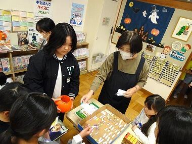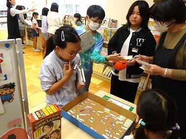 今日の昼休み、図書室でハロウィンのイベントがありました。本を借りるとくじが引け、もう1冊借りられるチケットやしおりがもらえます。くじがなくなってしまうほどの盛況ぶりでした。ハロウィンイベントは、明日も開催されます。秋の夜長、たくさん本を読んでほしいと思います。