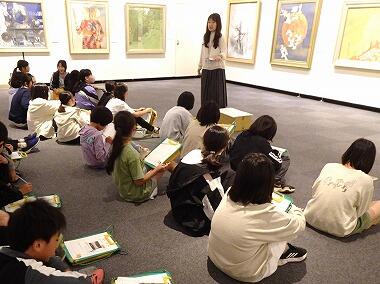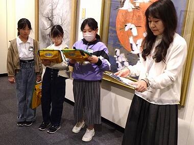 5年生が、「さくら市ミュージアム ー荒井寛方記念館ー」で開催されている「春の院展」の見学に行ってきました。この展覧会は、春先から東京、名古屋、福岡など全国13地区を巡回する展覧会ですが、10月19日からは、さくら市で開催されています。今日の見学では、学芸員の方の説明や各自が好きな絵を選び、選んだ理由などを交流しながら鑑賞しました。
