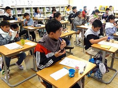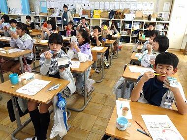 今日は3名の歯科衛生士の方にお出でいただき、健康教室を実施しました。5、6年生は、むし歯・歯周炎の原因を知り、予防することを目的に行いました。むし歯だけでなく、歯周病にならないようにするためにはどうすればよいのかを考えながら、実際に歯磨きをしました。みんな真剣に取り組んでいました。