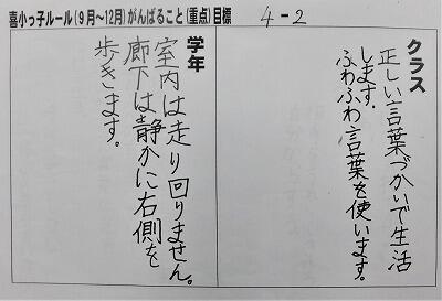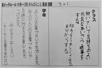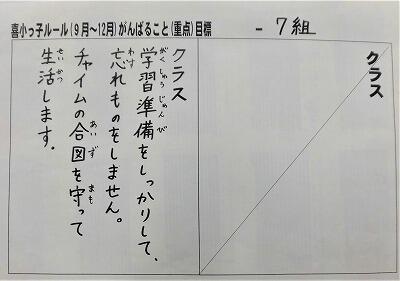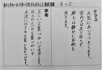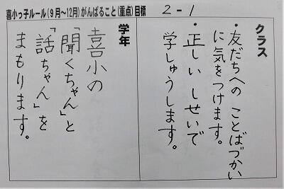 喜連川小学校には、生活や学習の中で守るべきルール「喜小っ子ルール」があります。1学期の終わりが近づいてきたことから、各クラスで「喜小っ子ルール」の振り返りを行いました。最後に、今後さらにルールを徹底したいことを、学年や学級ごとに決めていきます。どの学級でも、振り返りやこれからの生活について、真剣に話し合っていました。