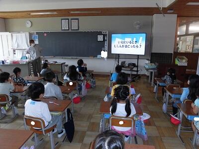 その後、動画を視聴しました。「たおれてくるもの」「おちてくるもの」「うごいてくるもの」から身を守ることが大切であることや、日頃から「ここで地震が起きたら、どうやって身を守るか」を予想することも大切だということを学びました。