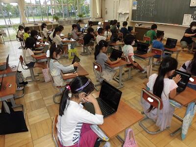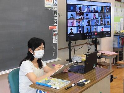 放課後にオンラインチャレンジ授業を行いました。各学級でGooglemeetで子どもたちと繋がり、やりとりをしていました。各学年ごとに課題に取り組み、オンラインでの学びを体感していました。