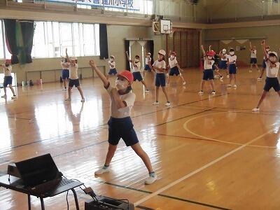 通常の日課となった10月4日(月)から、運動会の練習が少しずつ始まりました。緊急事態宣言中も、表現のダンスの動きを動画で見たり、見よう見まねで踊ってみたりしていたようで、初めからずいぶん踊れているような感じがしました。これから、運動会本番に向けて練習をしていきます。
