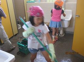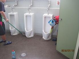 各階のトイレ掃除の様子を中心に紹介します。皆さん、猛暑の中お疲れ様でした。