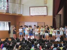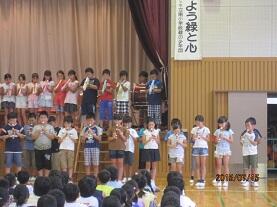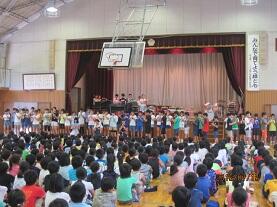 そして最後には、5・6年生の有志による「南っ子バンド」の伴奏で「ビリーブ」を全校児童が歌いました。みんなで一緒に楽しい「音楽朝会」の時間過ごすことができ、気持ちよく一日をスタートしました。今後も、色々な音楽活動を通して子ども達の情操を豊かに育てていきたいと思います。♪
