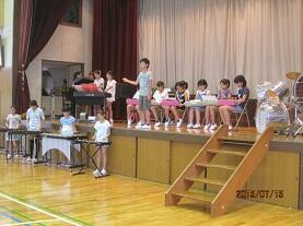 まず、4年生による「ミッキーマウス・マーチ」の合奏から始まりました。リコーダーや鍵盤ハーモニカと打楽器の合奏で、とてもリズミカルに上手な演奏でした。