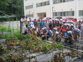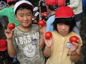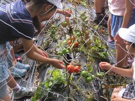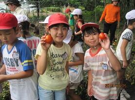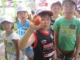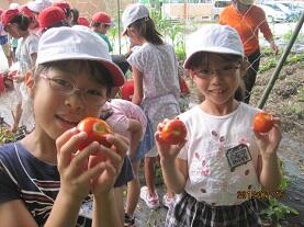 収穫は、30分ほどで終わりましたが、子ども達は赤く実ったトマトを手にして、ご満悦の表情でした。