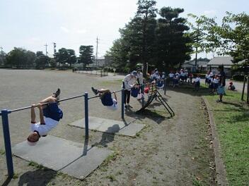 鉄棒の順番待ちの際は、木陰で待てるように工夫しています。