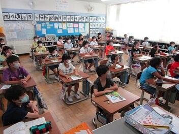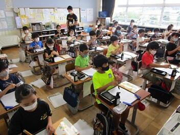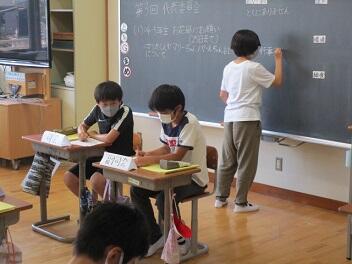 3年生以上のクラスの代表と、各委員会の代表が6年2組に集まりました。