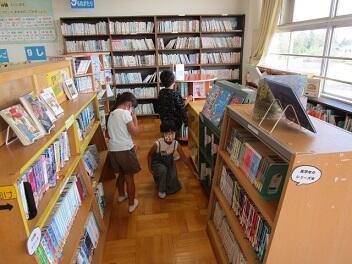 図書委員会の子どもたちが交代で、貸出業務を行っています。