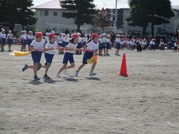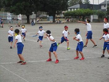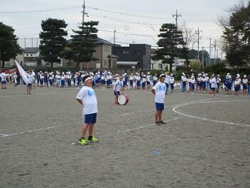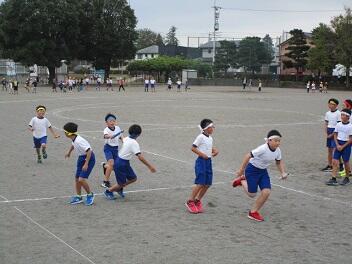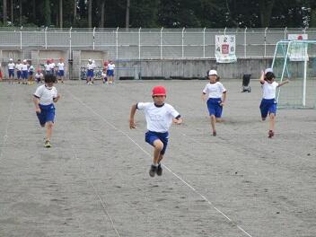 運動会に向けて、各学年が赤白のチームの決定のために、走力の測定を行っています。