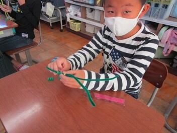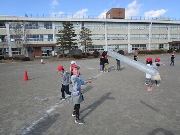 2年生が生活科の時間に風船ロケットを飛ばして楽しみました。