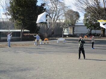 本日、工作クラブの児童が自分たちでつくったカイトをあげました。