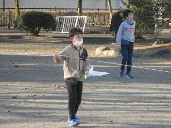 ちょうどいい感じの風も吹いていて、上手に風をとらえた児童は、長い時間滞空させることができていました。