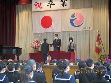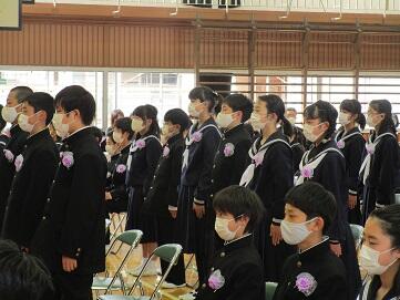 コロナ禍の中で、いろいろな制約を受けた。1年間でしたが、卒業生達は笑顔を絶やさず生活することができました。そんな、卒業生からこれまでたくさんの幸せを与えてもらいました。いろんな思い出があふれてくる卒業式となりました。