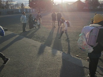 新しい登校班での登校が始まりました。新班長さんは、新しい集合時刻、集合場所を確認しながら、慎重に班員を連れて来てくれています。緊張している様子も見られますが、元気なあいさつをしっかりして登校しています。