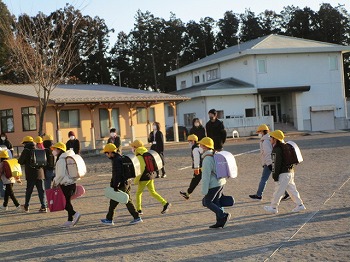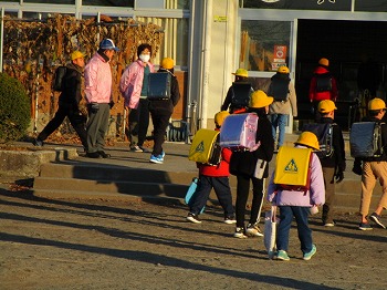 6年生が小学校で仲間とともに過ごす最後の日でした。登校班では、元気に「おはようございます」と今日も手本を見せていました。「もう一緒に歩けないのか...」とつぶやく1年生もいました。