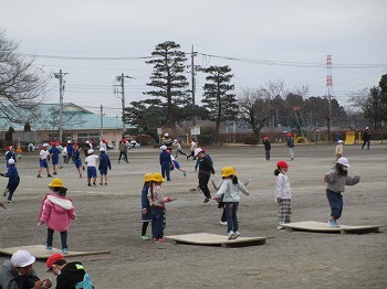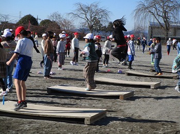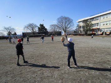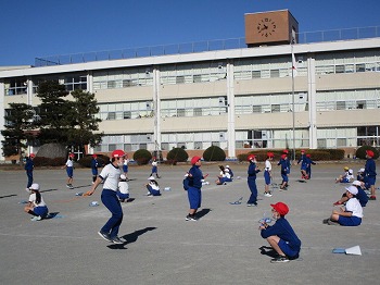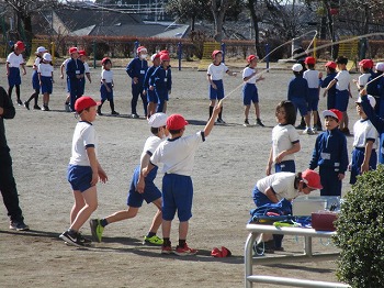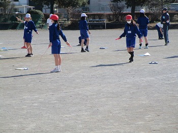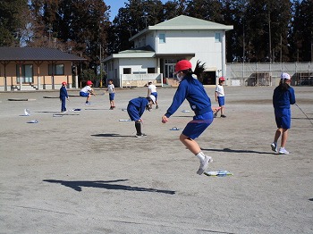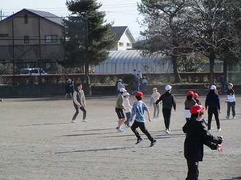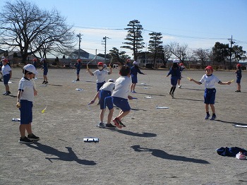 まだまだ寒い日が続いていますが、子どもたちは寒さに負けず元気に体育の授業に取り組んでいます。