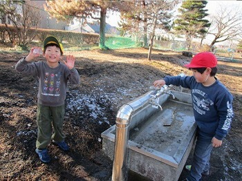 今日も奉仕活動として、手洗い場とトイレの清掃をしてくれました。
