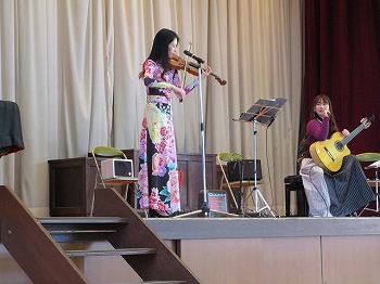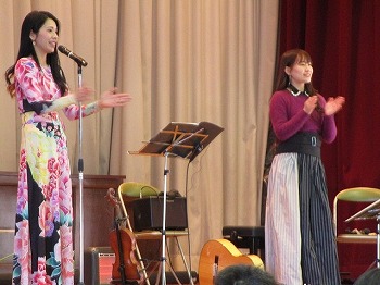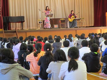 在校生からの心のこもったプレゼントを1年生が代表で贈呈しました。6年生からも美しいリコーダー演奏「カノン」と合唱「明日を信じて」をお礼の言葉とともにいただきました。