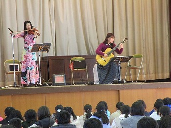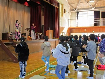 はじめに、ボランティアの皆様の素敵な演奏を聴かせてもらい、その後、子どもたちが実際に琴に触れて演奏しました。