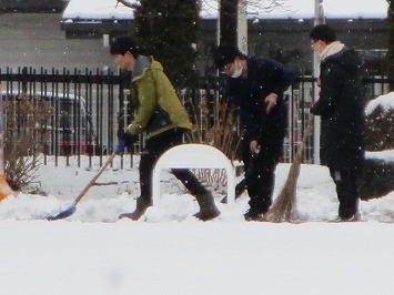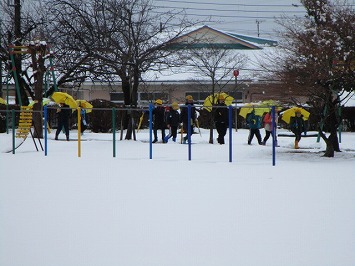 雪化粧の朝でしたが、青少年センター、市教育員会の方々に早朝よりおいでいただき、 今年度最終となるあいさつ活動を行いました。「あいさつは、先に、笑顔で、元気よく!」南小のあいさつの合い言葉です。