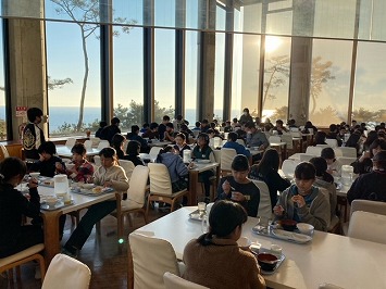 在校生は、登校班や清掃でやさしく教えてもらったこと、一緒に遊んだことなどを思い出しながら、オンラインで会に臨みました。クイズや6年生からのメッセージ動画、各クラスからのスライドショーの視聴で、各会場が盛り上がりました。