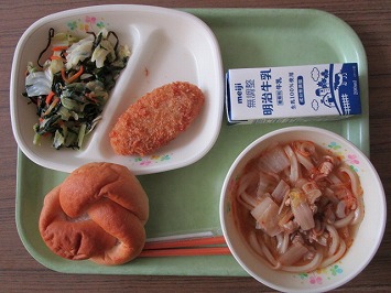 給食では、ハマグリのすまし汁、サワラの西京焼き、ひな祭りゼリー、3月3日の桃の節句を祝い「ひな祭り献立」をいただきました。