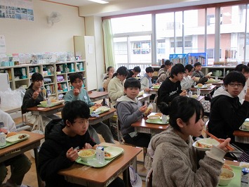 卒業や進級を祝う給食が楽しみな毎日です。6年生のリクエスト給食や人気のメニューです。昼の校内放送では、児童から6年生への感謝のメッセージが紹介されています。下級生の6年生への感謝の気持ちとやさしいお兄さんお姉さんと離れがたい思いが伝わってきます。