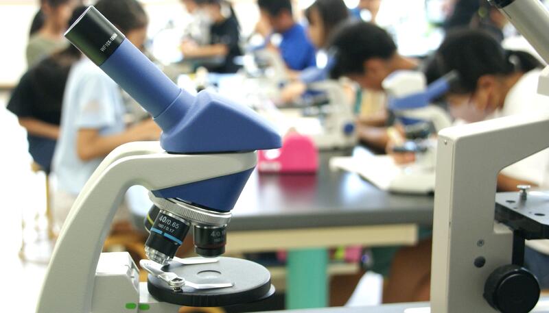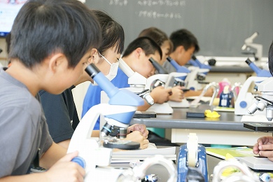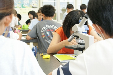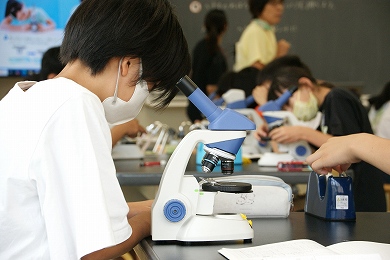 この時間は、顕微鏡を使ってカボチャとアサガオを使って花粉を調べていました。