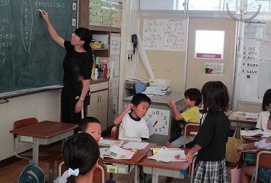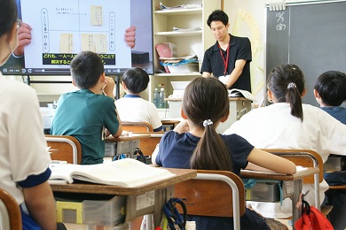 また4年3組ですが、9月1日から4週間(9月26日まで)、教育実習生として本校の卒業生である渡邉心愛(ここな)さんが、本校で研修や授業参観、T2による授業実践、そして研究授業を体験しています。