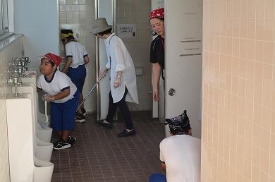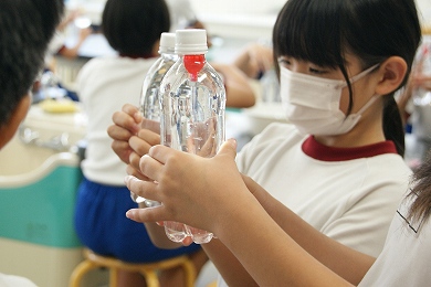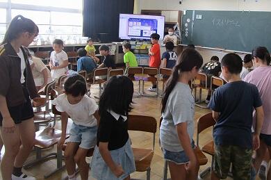 この日は、非常に暑い1日で、昼休みには熱中症予防運動指数(WBGT値)が31℃以上(原則運動中止)を越えていたので、予定を変更して、全グループ室内での活動としました。