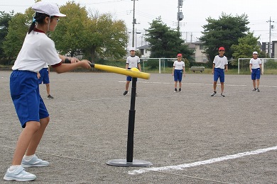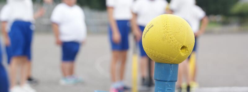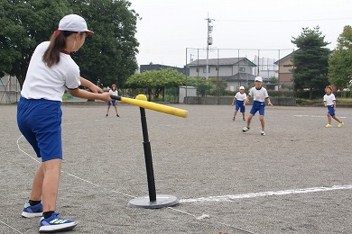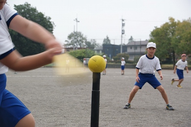 ティーボールは、ボールを打ったり次の塁へ走ったりして得点することと、得点をされないように隊形を工夫しボールを捕ったり投げたりして守ることによって、集団対集団の攻防を楽しむことができる運動です。
