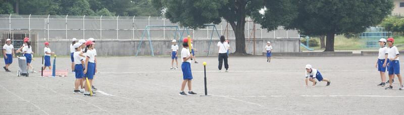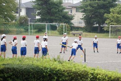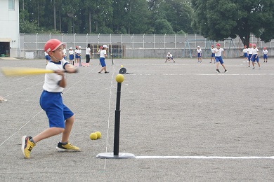 ティーボールの一番の楽しみはバッティングです!止まっているボールを打つのは簡単そうに見えますが、結構難しいようです。子供たちは経験を重ねるうちに、上手にボールを打って攻めたり、得点をされないようにボールを捕って守ったりすることができるようになってきました。