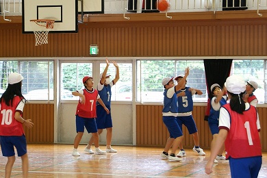 この時間は、体育館で仲間とバスケットボールを楽しむ姿が見られました。