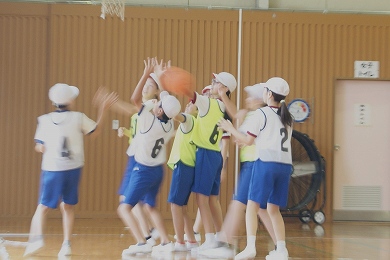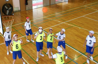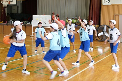 【6年】体育「ゴール型(バスケットボール)」空調設備が大活躍!